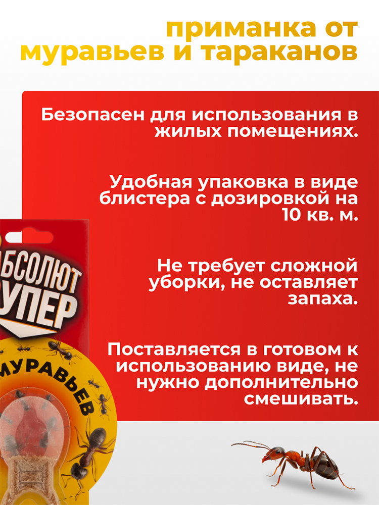 Абсолют супер – универсальное средство для борьбы с насекомыми в доме, квартире или на даче. Блистер для вредителей объемом 10 мл обладает сильным эффектом против муравьев.