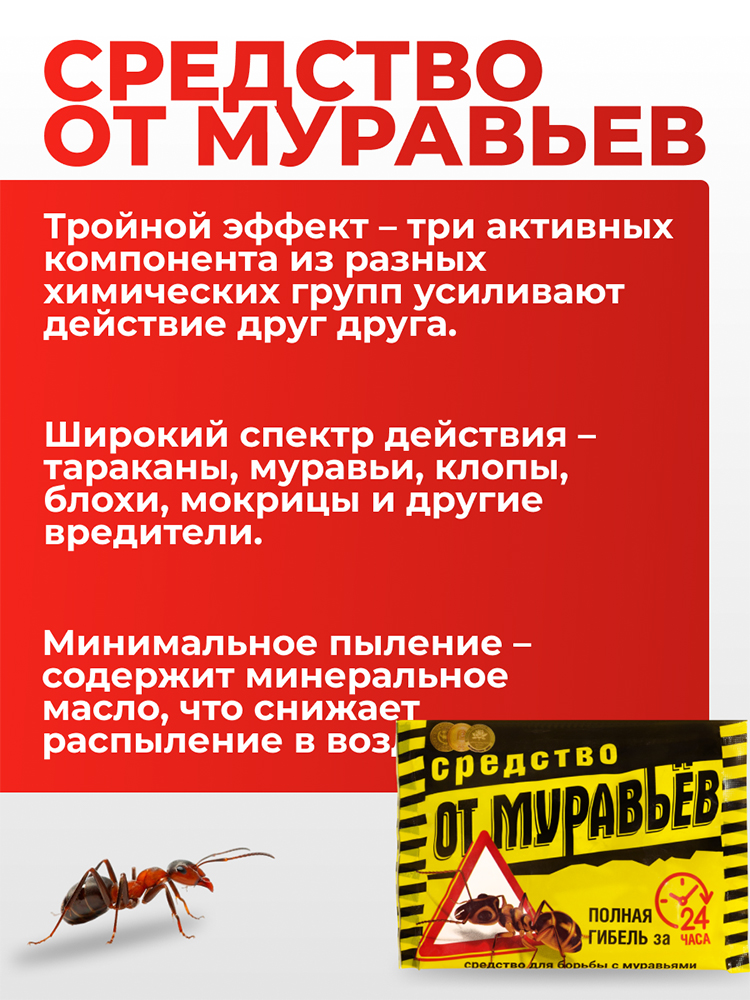 Альфа-циперметрин — 0,05%, Ацетамиприд — 0,1%, Борная кислота — 4%