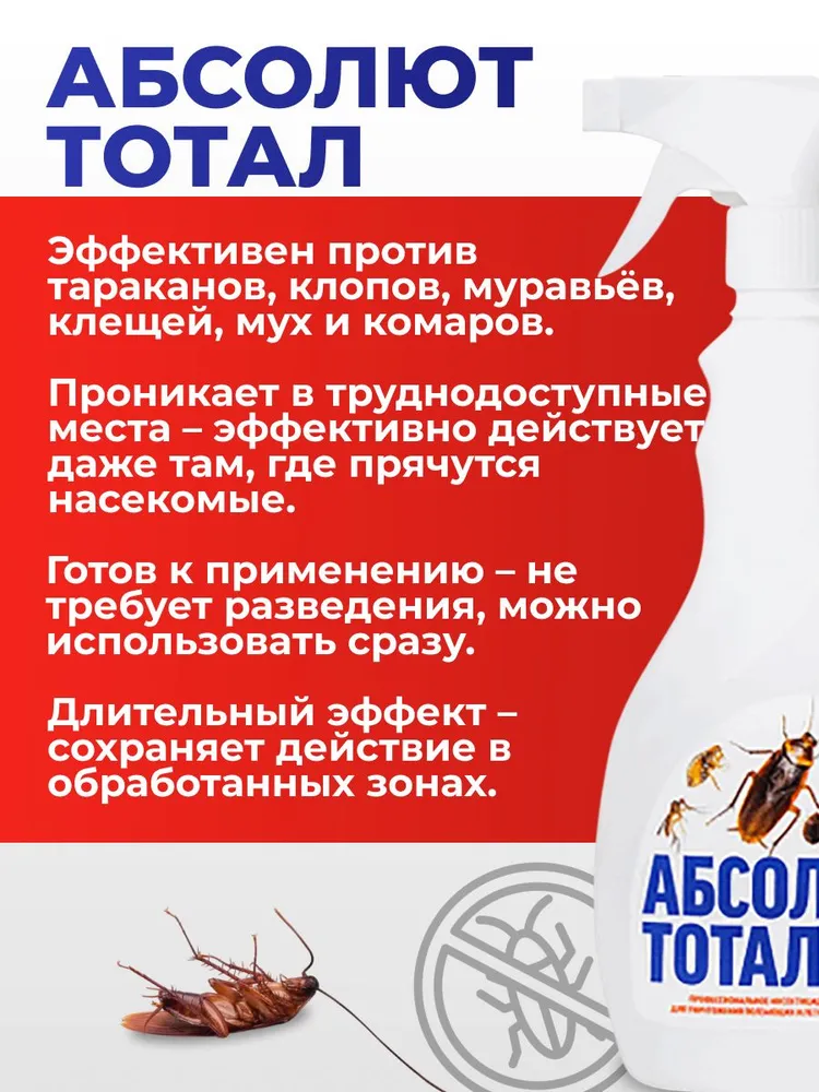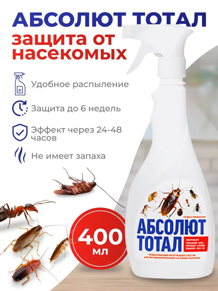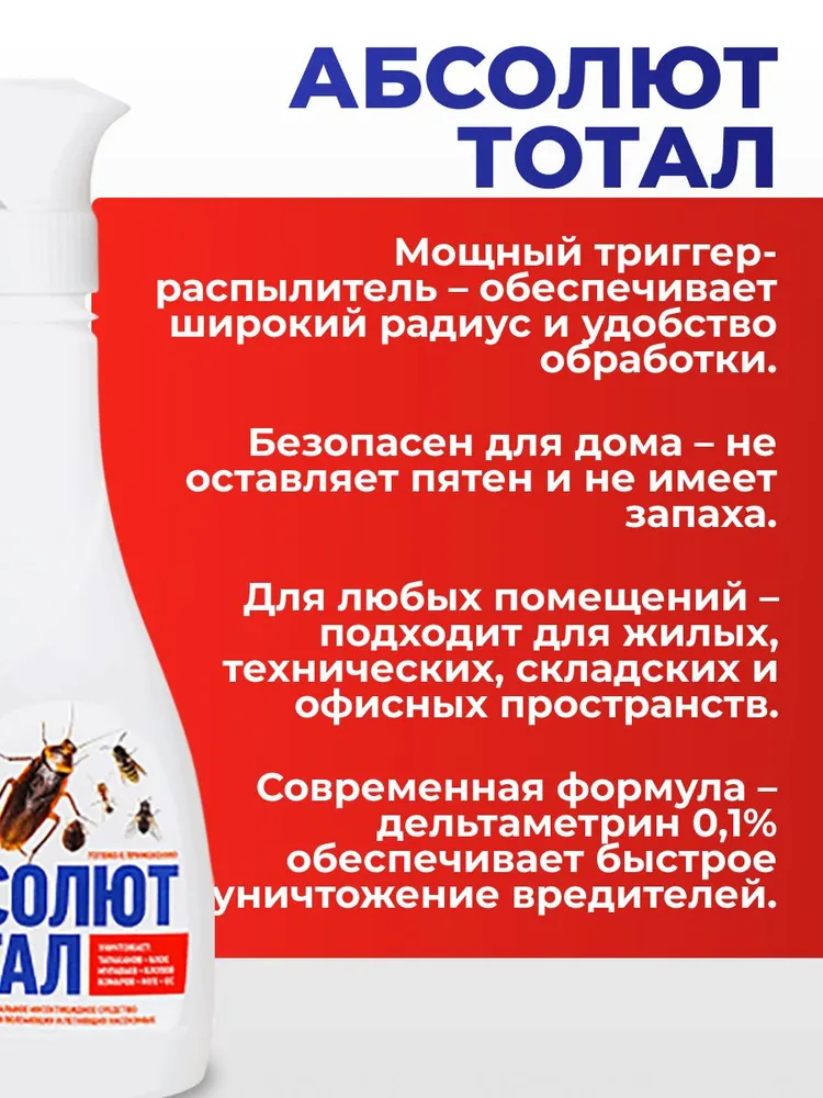 Средство с триггером от тараканов, муравьев, клопов, блох, мух — Абсолют тотал 400 мл